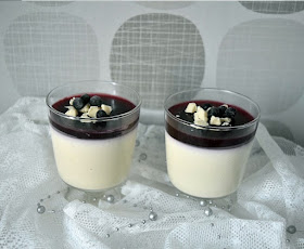 Mustikkakiille antaa kivan värikontrastin valkoiselle pannacottatäytteelle. :)